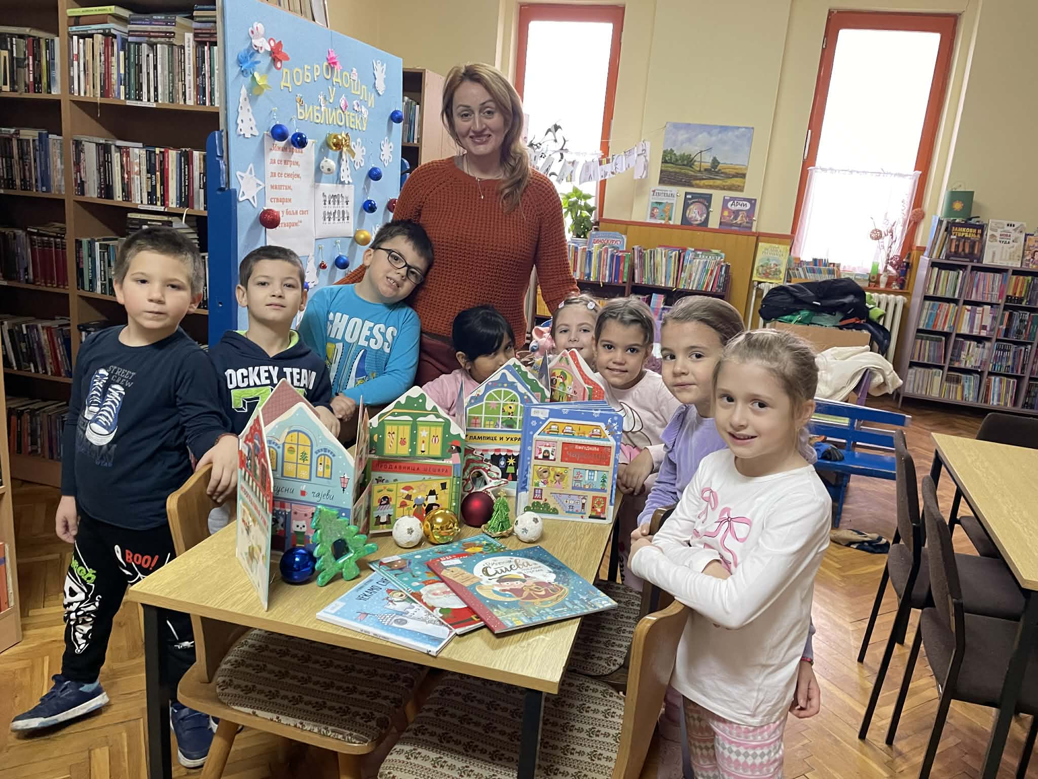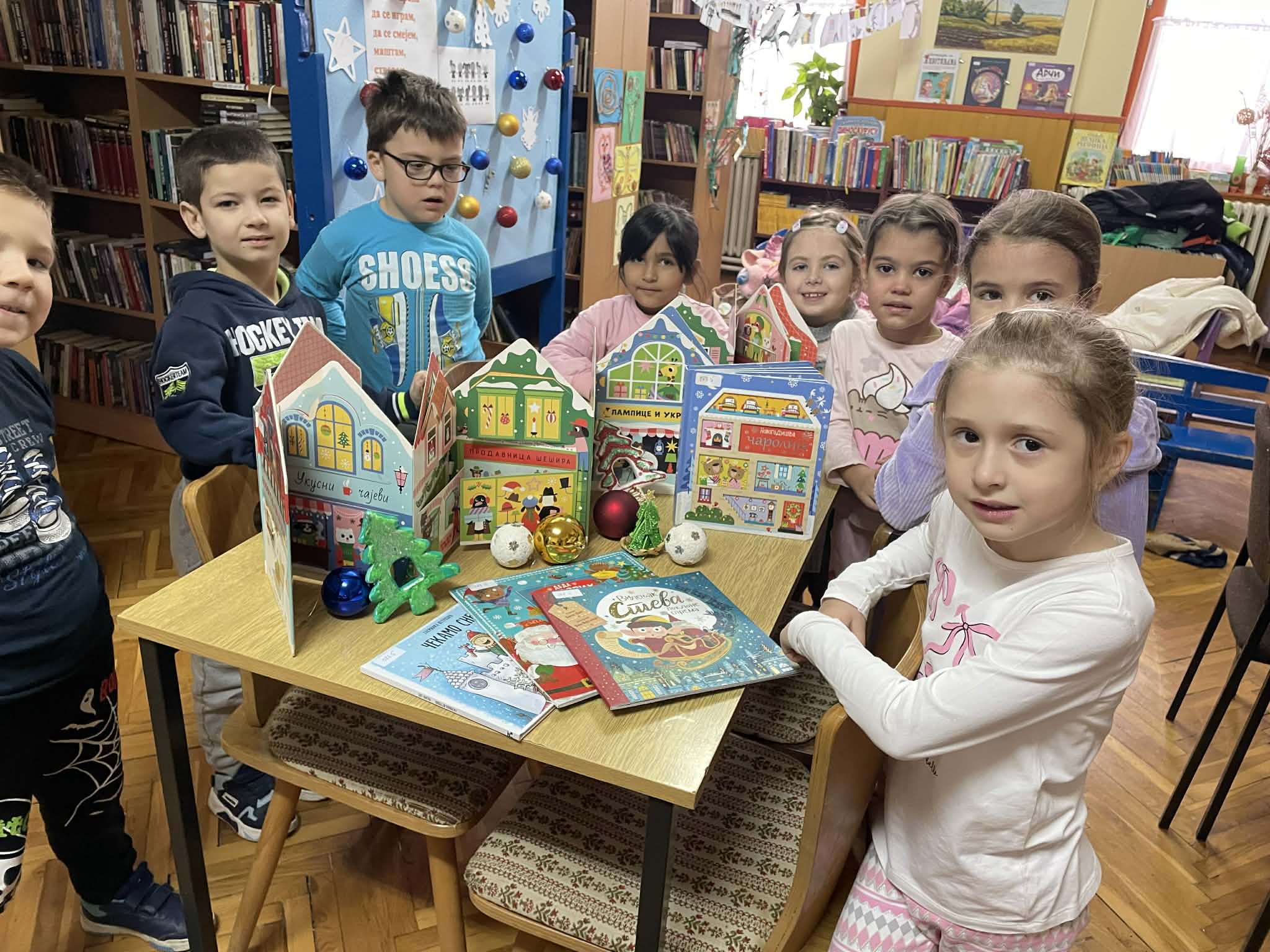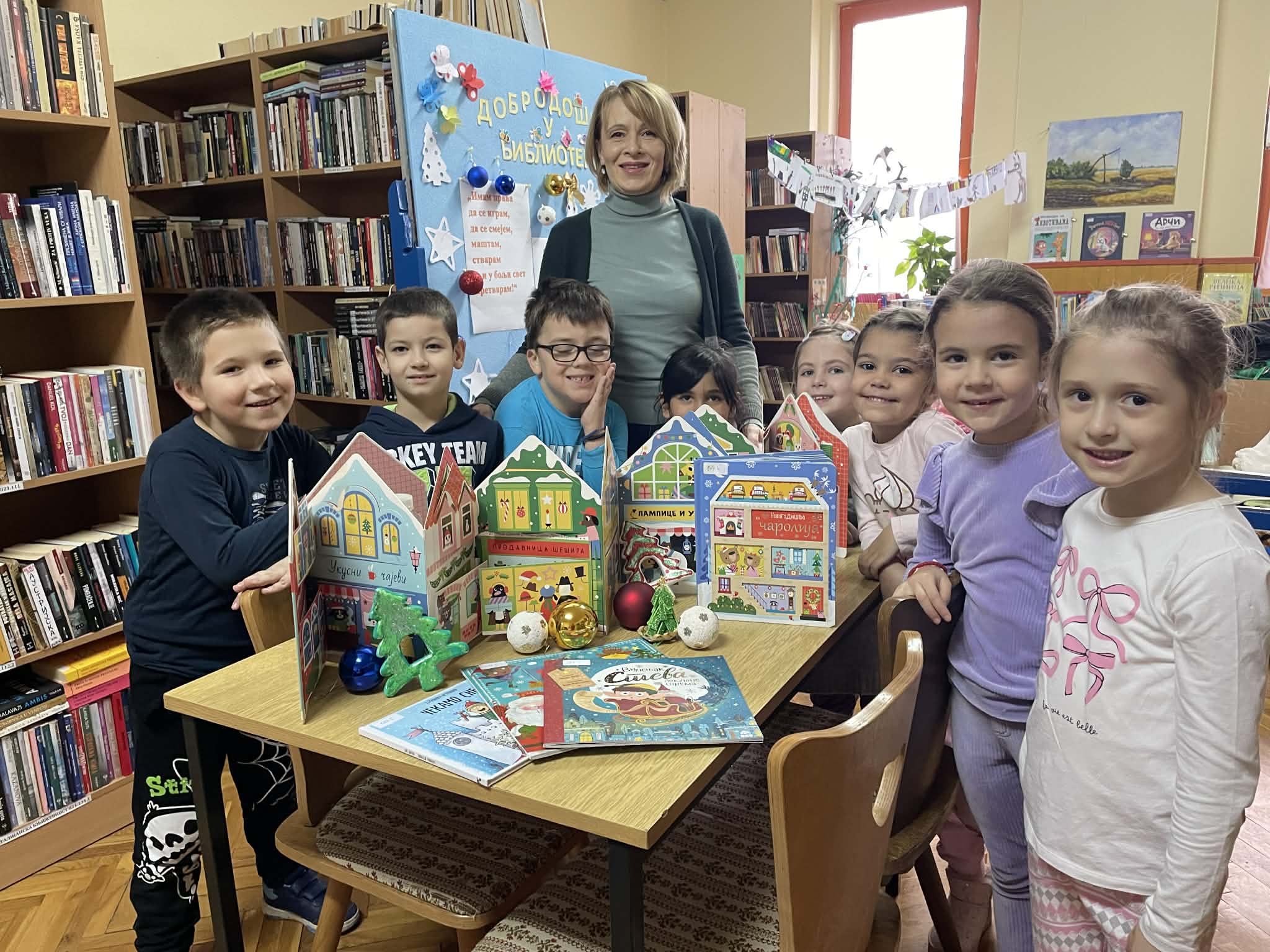 Огранак „Др Славко Јовин“ у Обровцу такође је био у празничком расположењу. Радионица под називом „Улицом новогодишњих жеља“, почела је разгледањем сликовница које говоре о празницима. Као увод у радионицу, библиотекарка Душанка Папић је за децу одабрала и прочитала причу „Новогодишња чаролија“. Било је занимљиво чути како су се медведићи из приче спремали за празнике и какве поклоне им је Деда Мраз одабрао. Увек радознали и маштовити, предшколци су желели да направе улицу којом ће стићи Деда Мраз са поклонима. Са васпитачицом Љубицом Субић и библиотекарком, деца су од картона израдила и белом темпером осликала кућице које личе на медењаке. Малишани су кућицама и лампионима украсили библиотеку, а на крају се послужили правим медењацима.