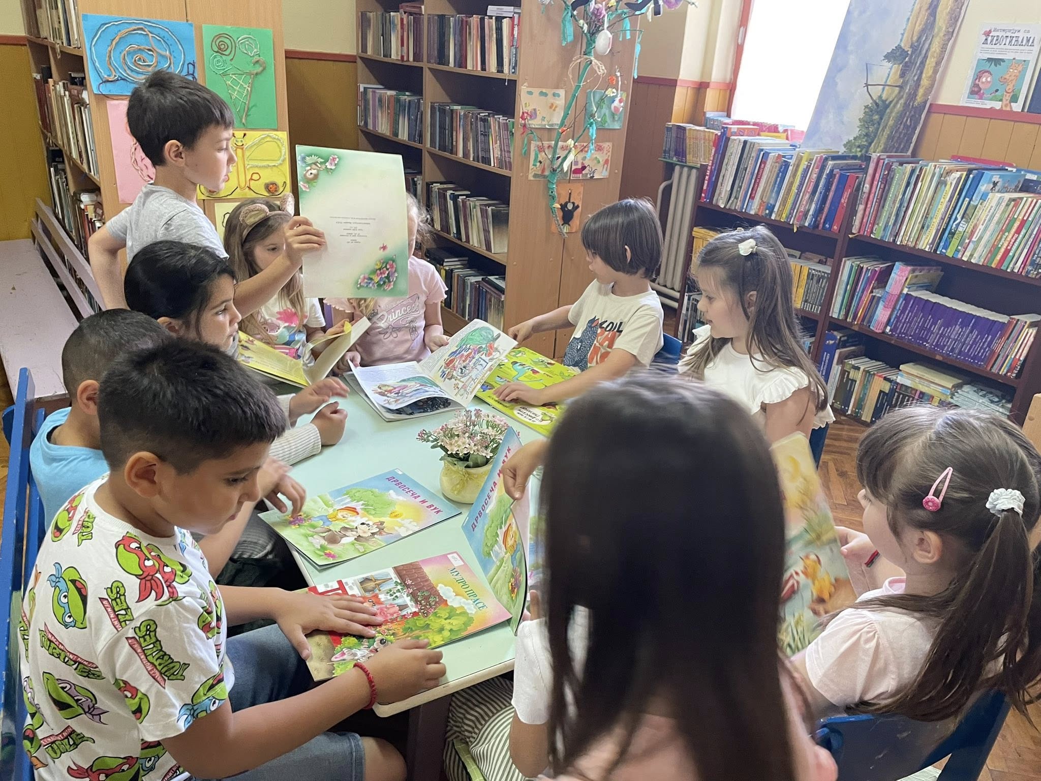 Посета деце из забавишта огранку Библиотеке у Обровцу искориштена је за разговор о правима деце, као и читању и упознавању са фондом Библиотеке.
