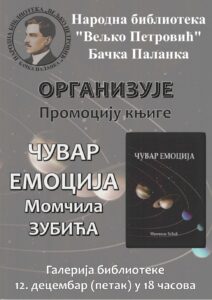 У петак, 12. децембра 2025. године, у Народној библиотеци „Вељко Петровић“ одржана је промоција прве збирке песама Момчила Зубића, „Чувар емоција“.
