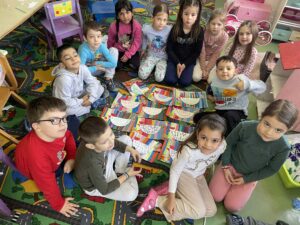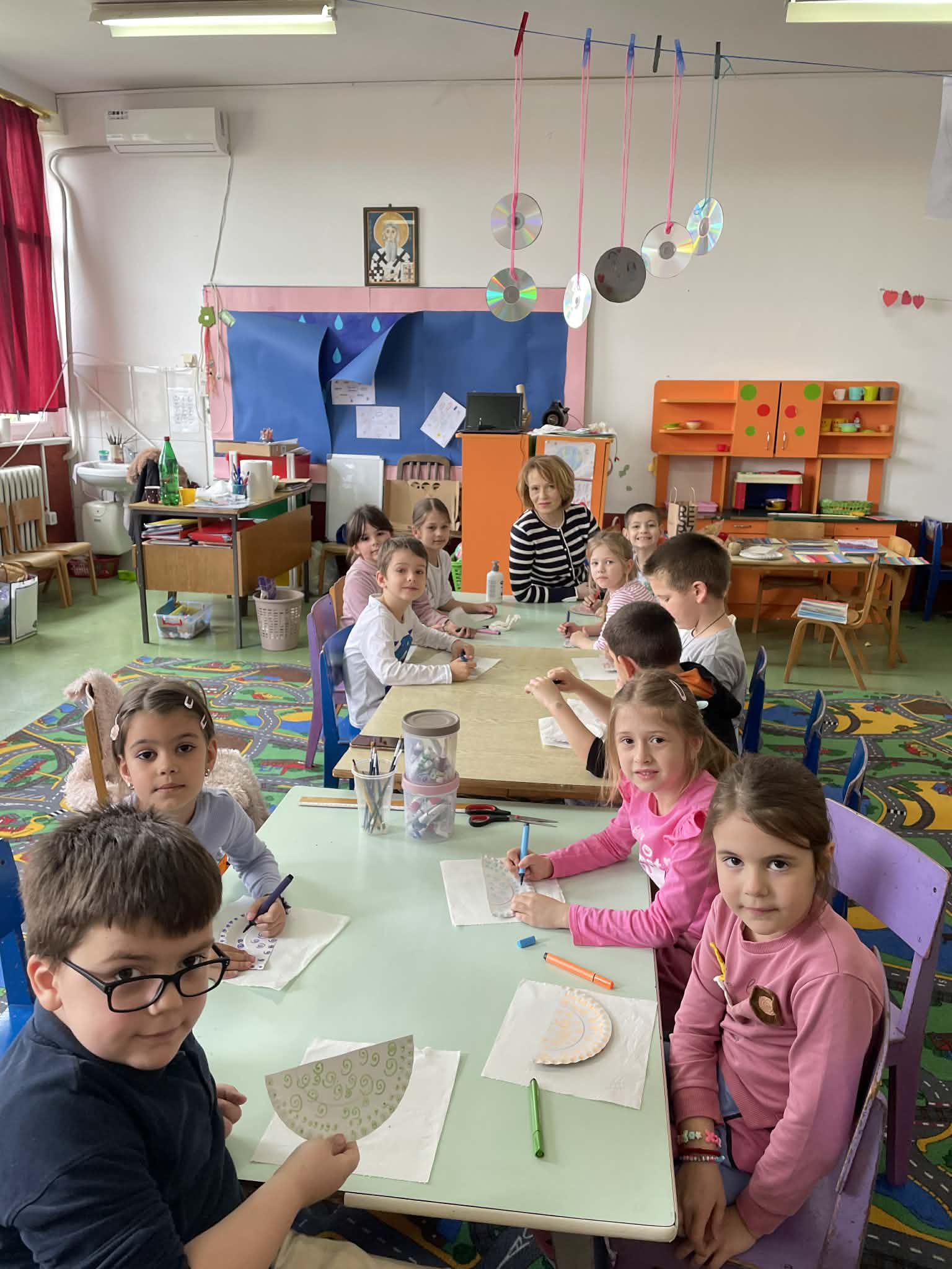Предшколци из забавишта су на традиционалној ускршњој радионици израђивали честитке са празничним мотивима. Поред тога, деца су имала прилику са науче и нешто ново о предстојећем празнику. Васпитачица и библиотекарка Душанка Папић говориле су деци о симболици и начину на који се слави Ускрс, о шарању јаја и поклонима за децу.